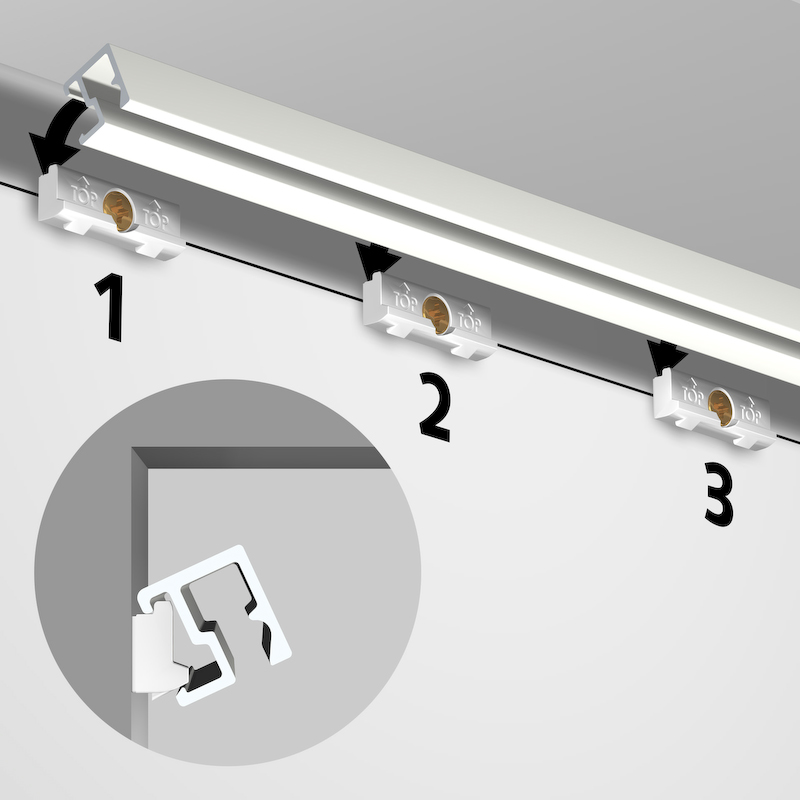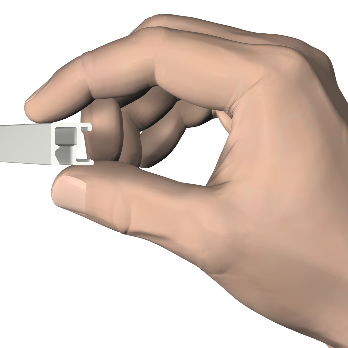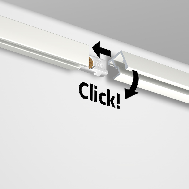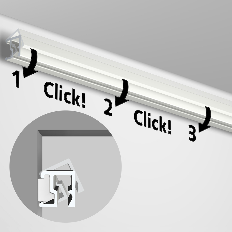 Klick PRO är en vidareutveckling av Galleriskena Klick. Tillverkad i aluminium. Den är något högre än