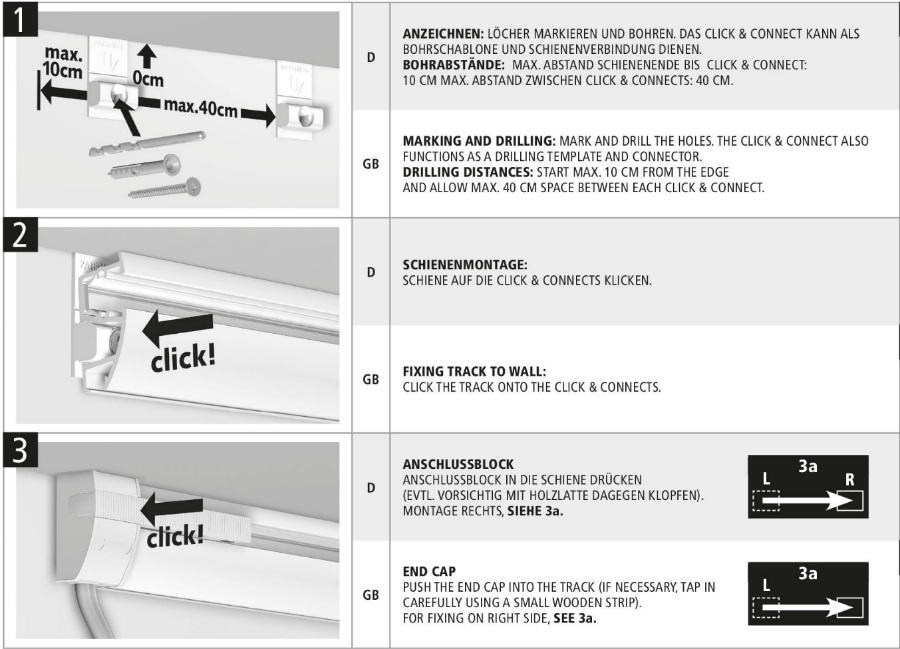 Klick skenan och monteras på ett sådant sätt att upphängningstrådens glidfästen kan döljas bakom