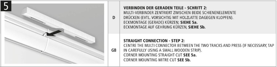 metallsåg. Skenan täcker väggbeslagen så dessa inte syns.