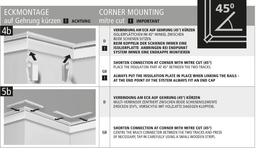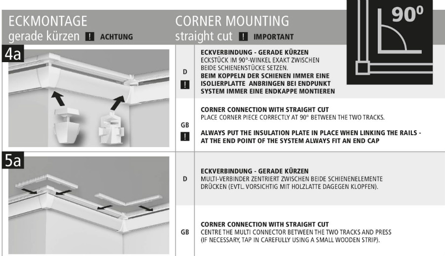Att montera skenan är enkelt och kan göras så att den ansluts tätt till taket. Lagerförs i vitt